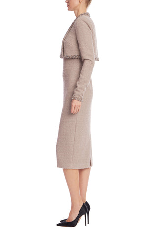 Badgley Mischka Tweed Sheath Dress with Embellished Popover