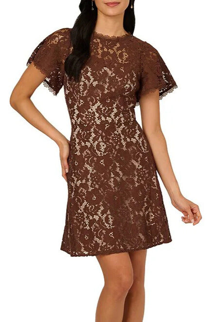 AP1D105925 Define Fit Bodice Lace Overlay A-Line Silhouette Short Dress