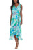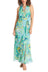 London Times Botanical Print V-Neckline Sheer Flutter Short Sleeves Smocked Waist A-Line Trimmed Hem Maxi Dress