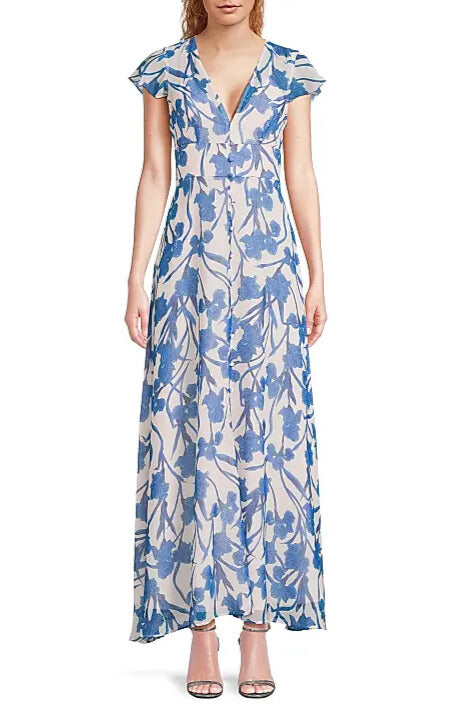 Elevate your wardrobe with this stunning Hutch maxi dress, designed to make you feel confident and beautiful. The flattering V-neckline draws attention upward, while the A-line skirt skims gracefully over your curves for a universally flattering silhouette. Short sleeves offer comfortable everyday wear, and the button-down front adds versatile styling options. A secure zipper closure and decorative back buttons complete the look with polished sophistication. Perfect for everything from casual outings to special occasions, this dress combines thoughtful design details with timeless elegance.