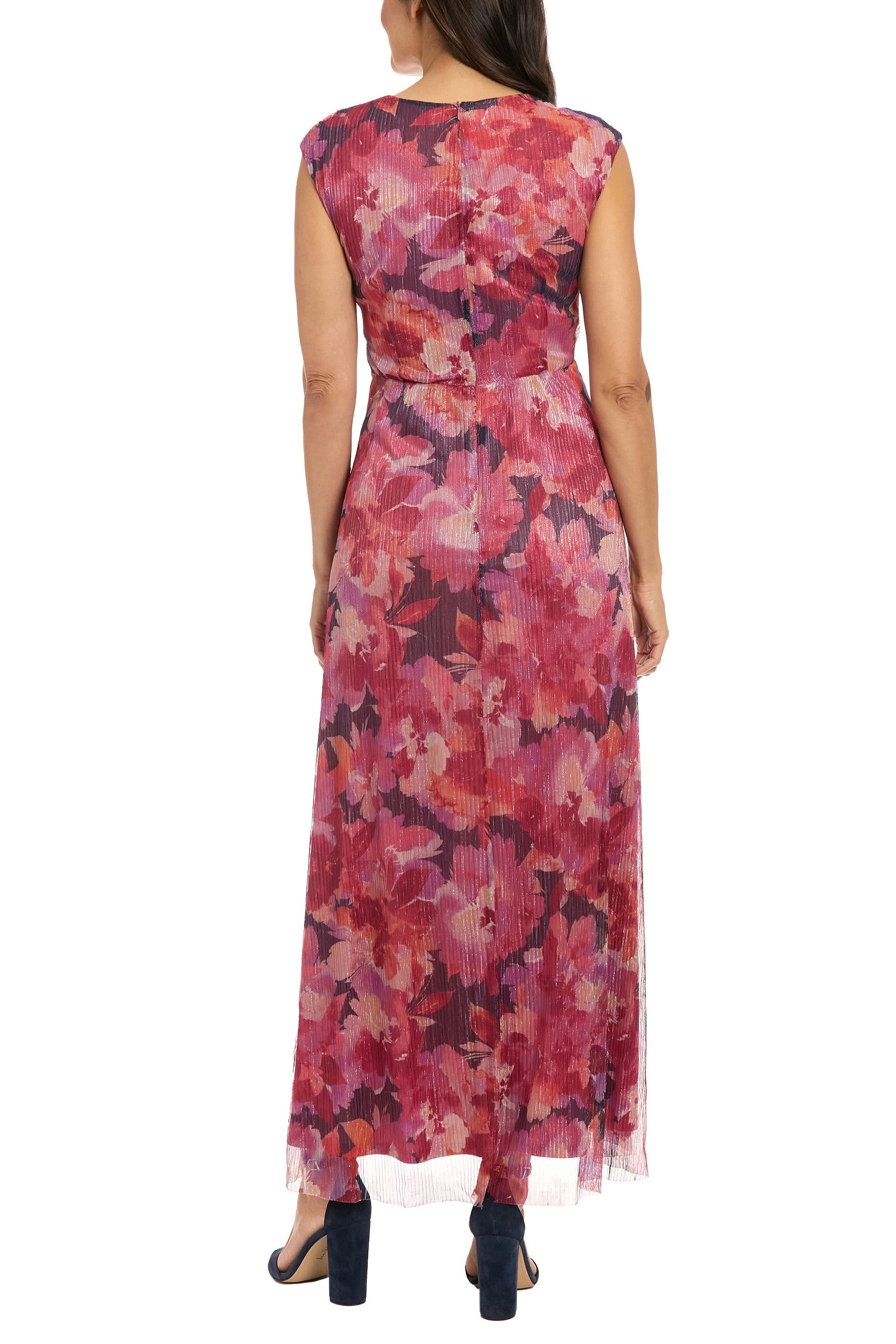 London Times Floral Sleeveless Belted Plissé Maxi Dress