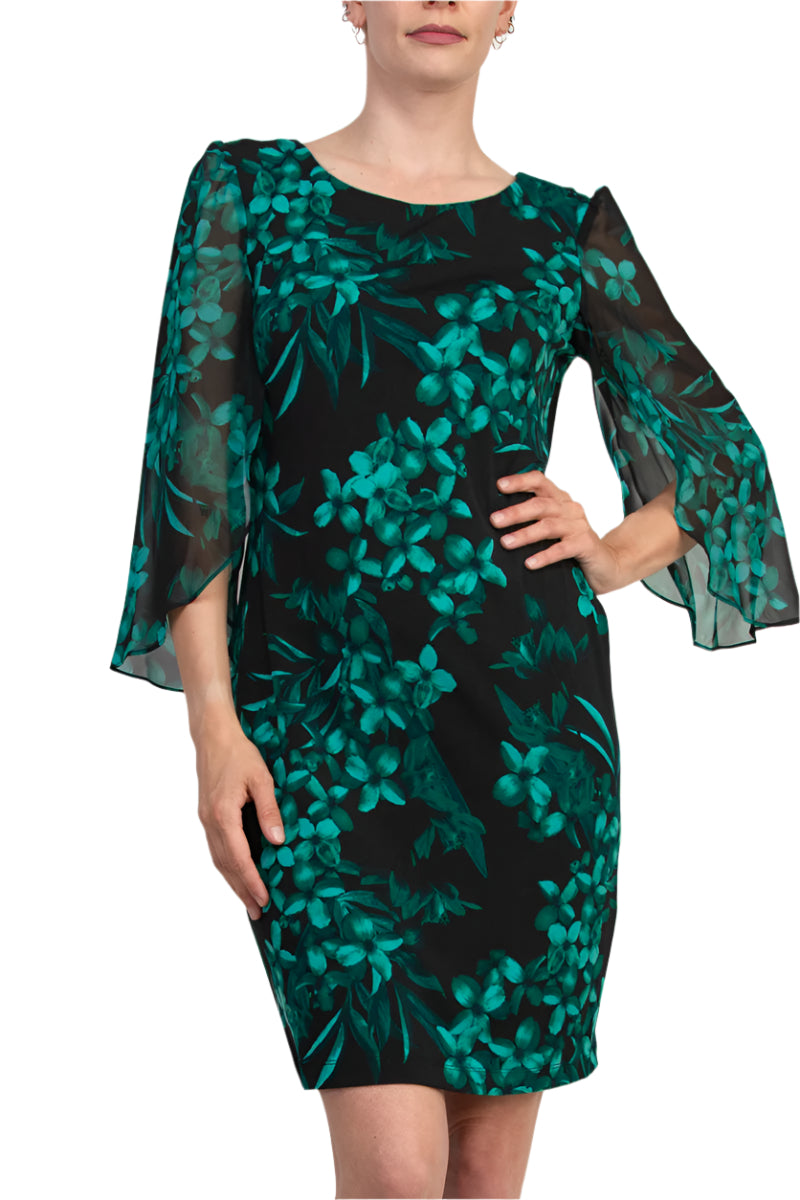 Connected Apparel Floral Detail Three-Quarter Split Sleeves Sheath Dress