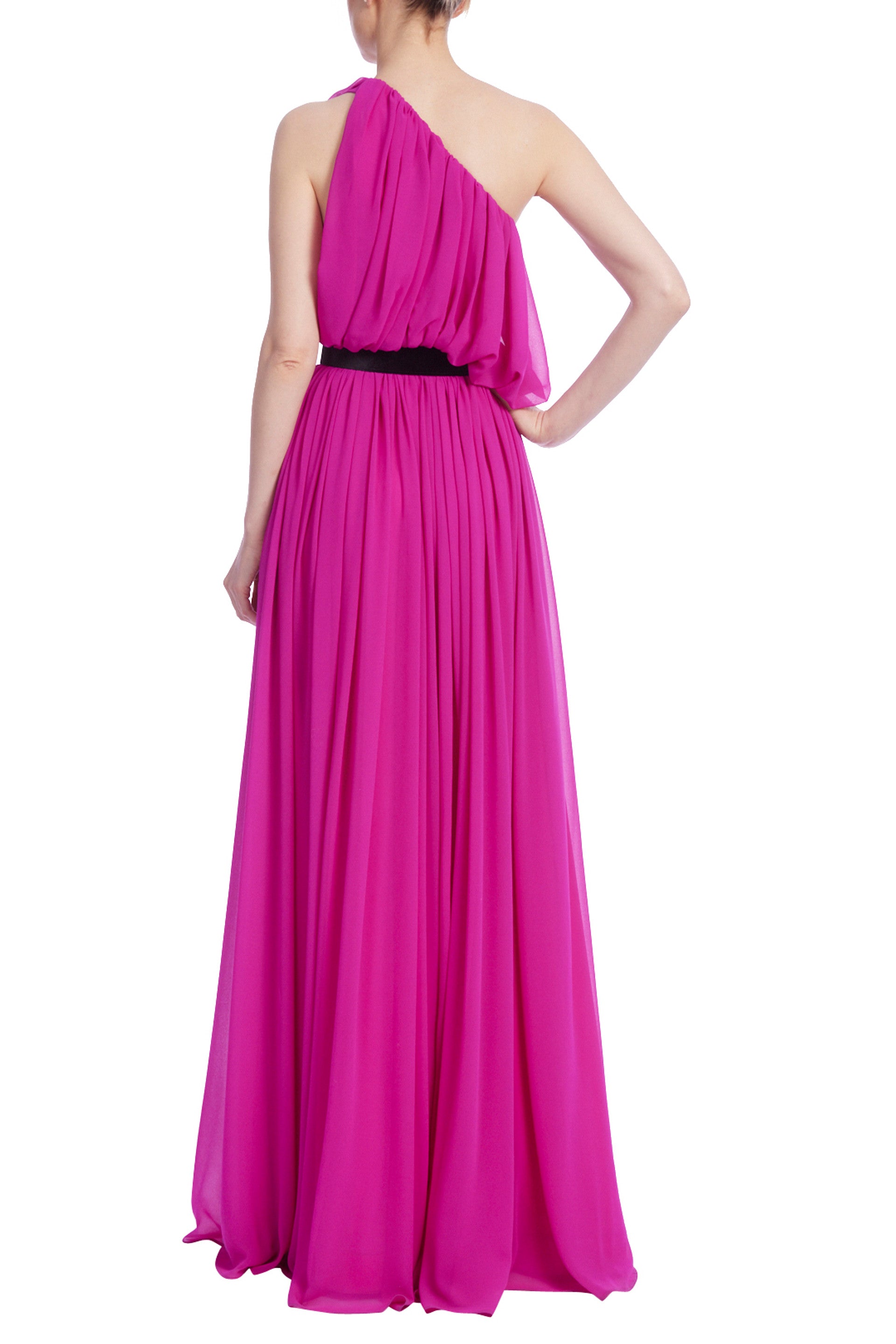 Striking one-shoulder sleeveless design offers modern, architectural elegance
