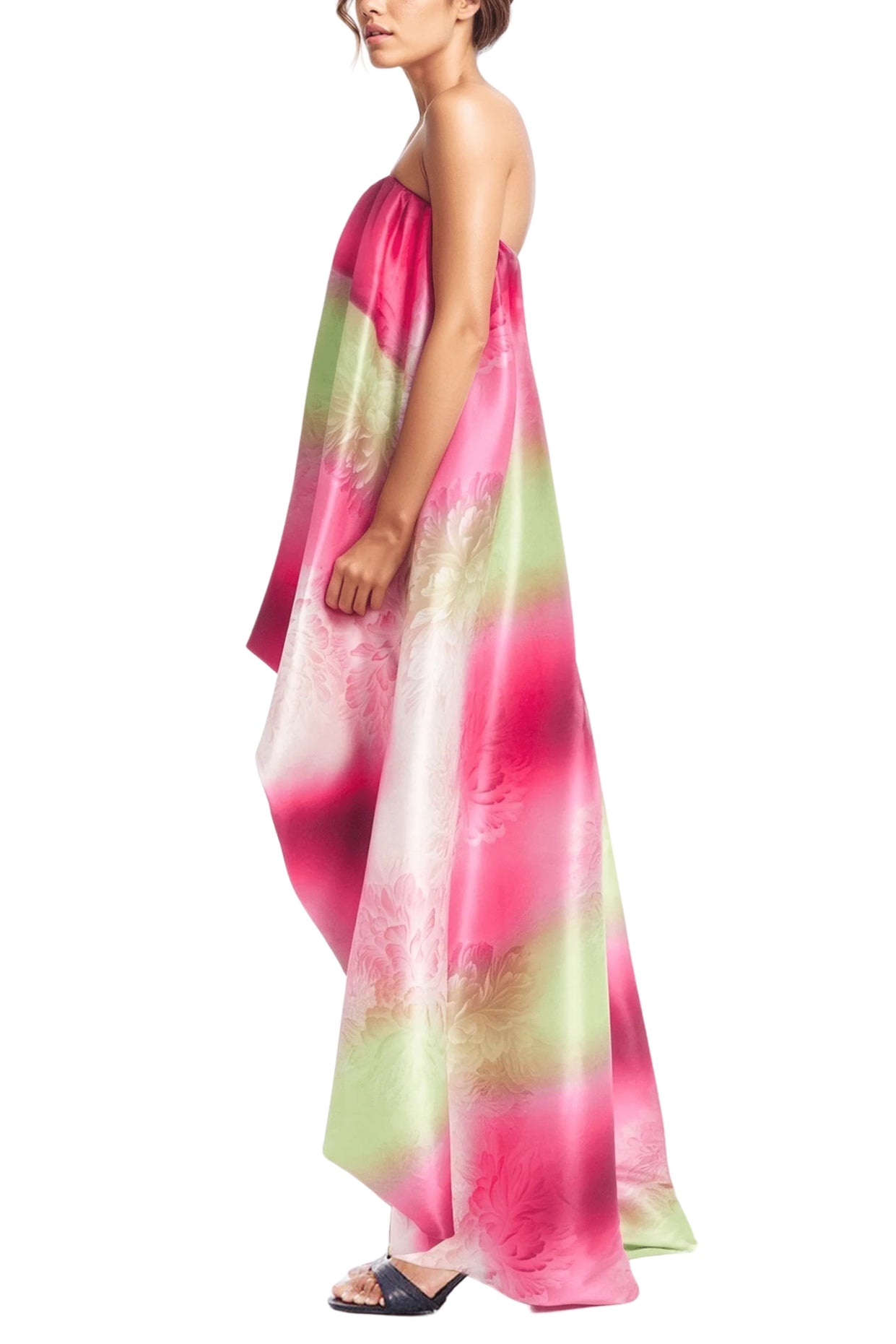 Hi-low hemline adds playful elegance and red carpet-ready movement