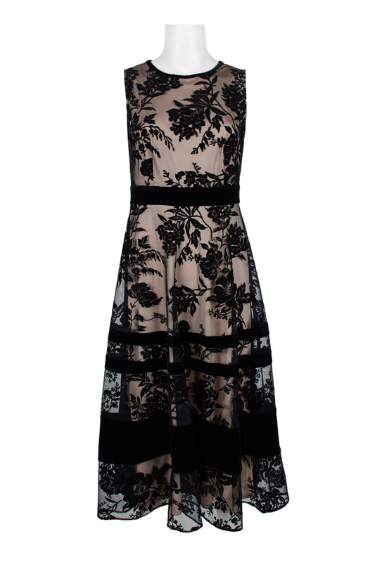 Taylor Crew Neck Sleeveless Zipper Back A-Line Ecru Lace Dress