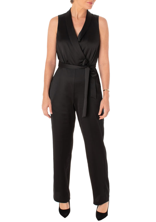 Taylor V-Neck Sleeveless Tie Waist Zipper Back Satin Jumpsuit