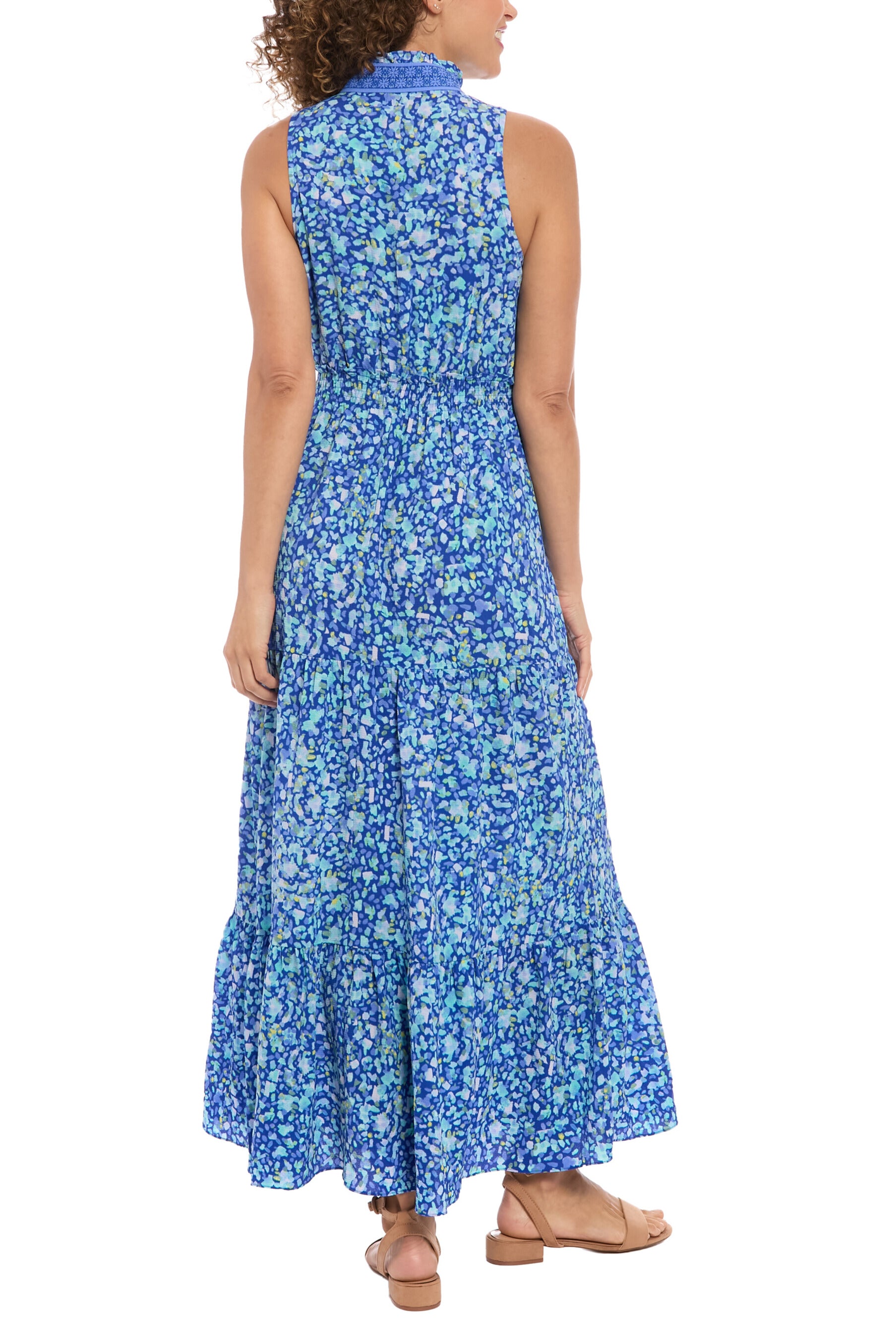 London Times High Detailed Neckline Sleeveless All-Over Floral Shirred Bodice Maxi Dress