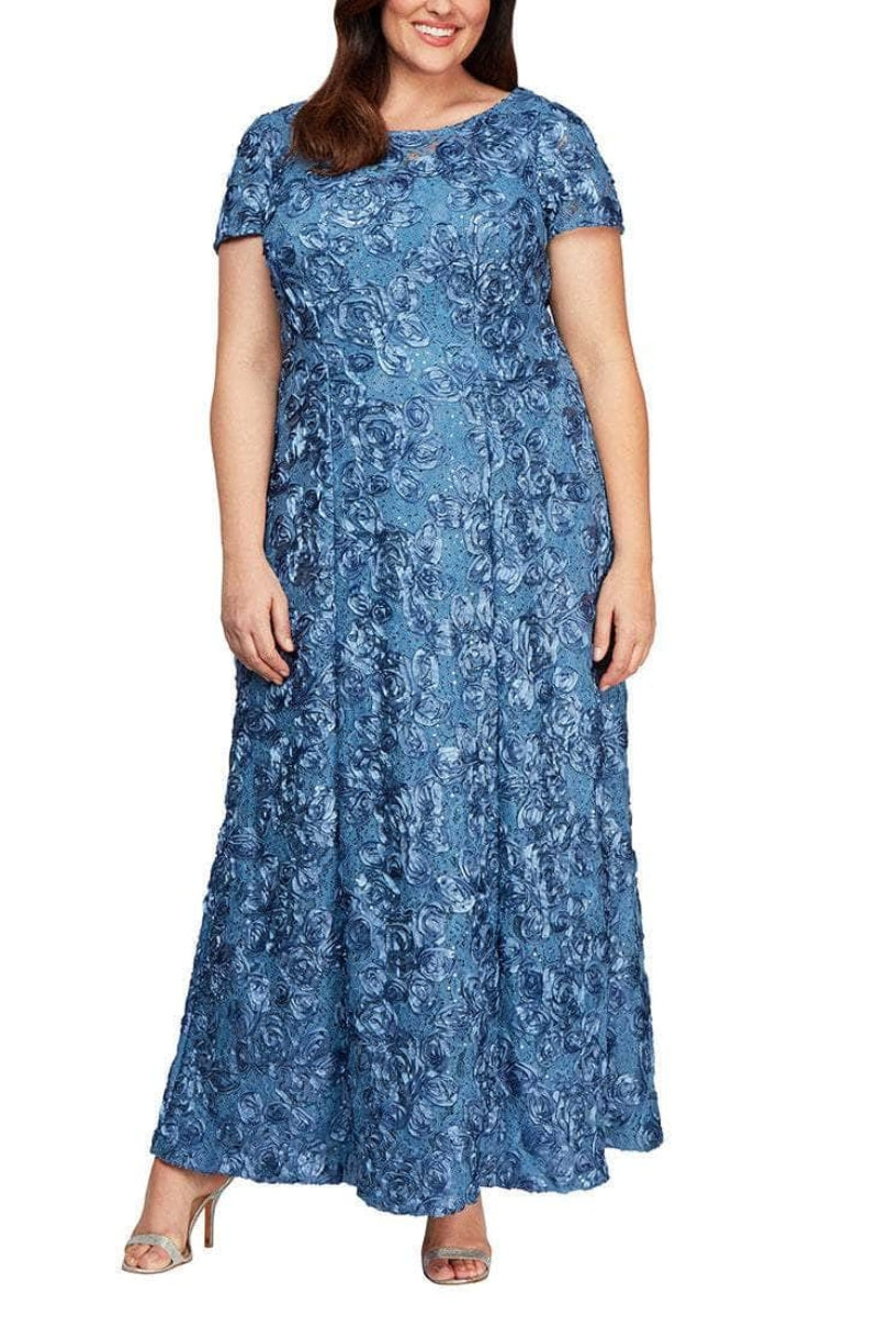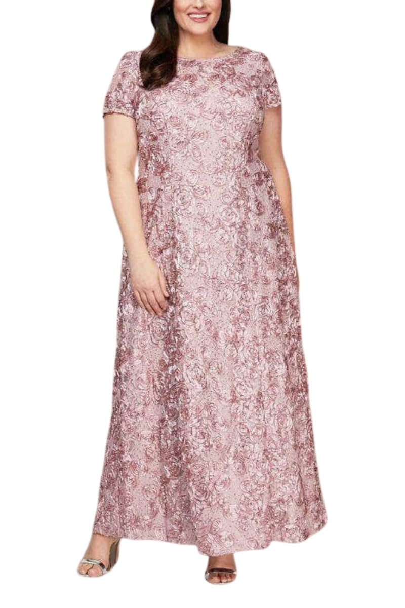 The Alex Evenings dress offers a graceful A-line silhouette designed specifically for plus-size comfort and style. Adorned with intricate floral soutache bead appliques and a jewel neckline, this dress adds a touch of elegance to any evening event. Short sleeves provide ease and modest coverage, while the zipper closure ensures a secure and comfortable fit. Perfect for special occasions, it combines beautiful details with thoughtful design to help you feel confident and comfortable throughout the night.