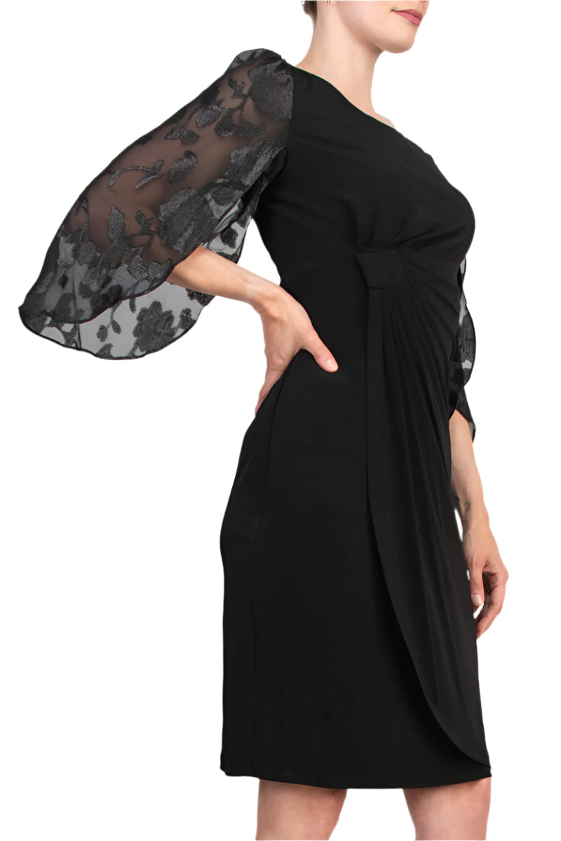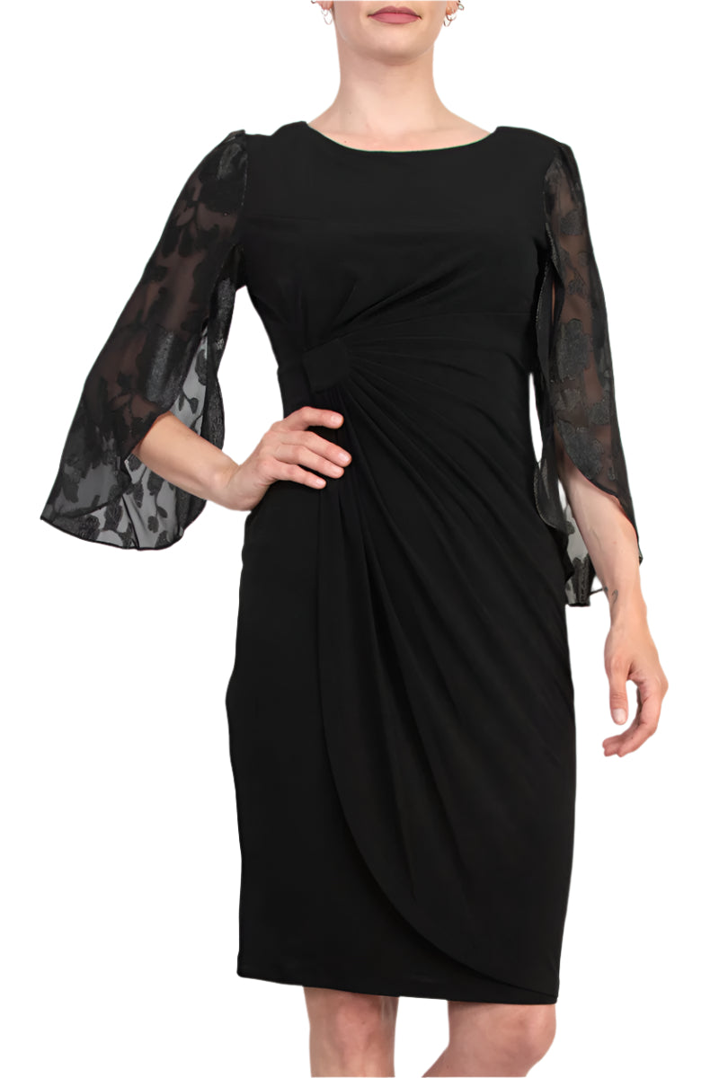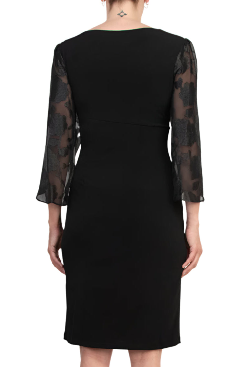 Robe fourreau transparente à manches trois-quarts et motif floral, détails torsadés sur le côté, Connected Apparel