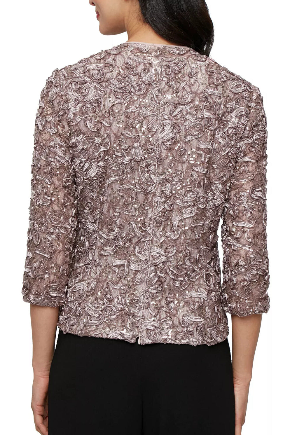 Alex Evenings Square Neckline Three-Quarter Sleeves Tailored Soutache Blouse Top
