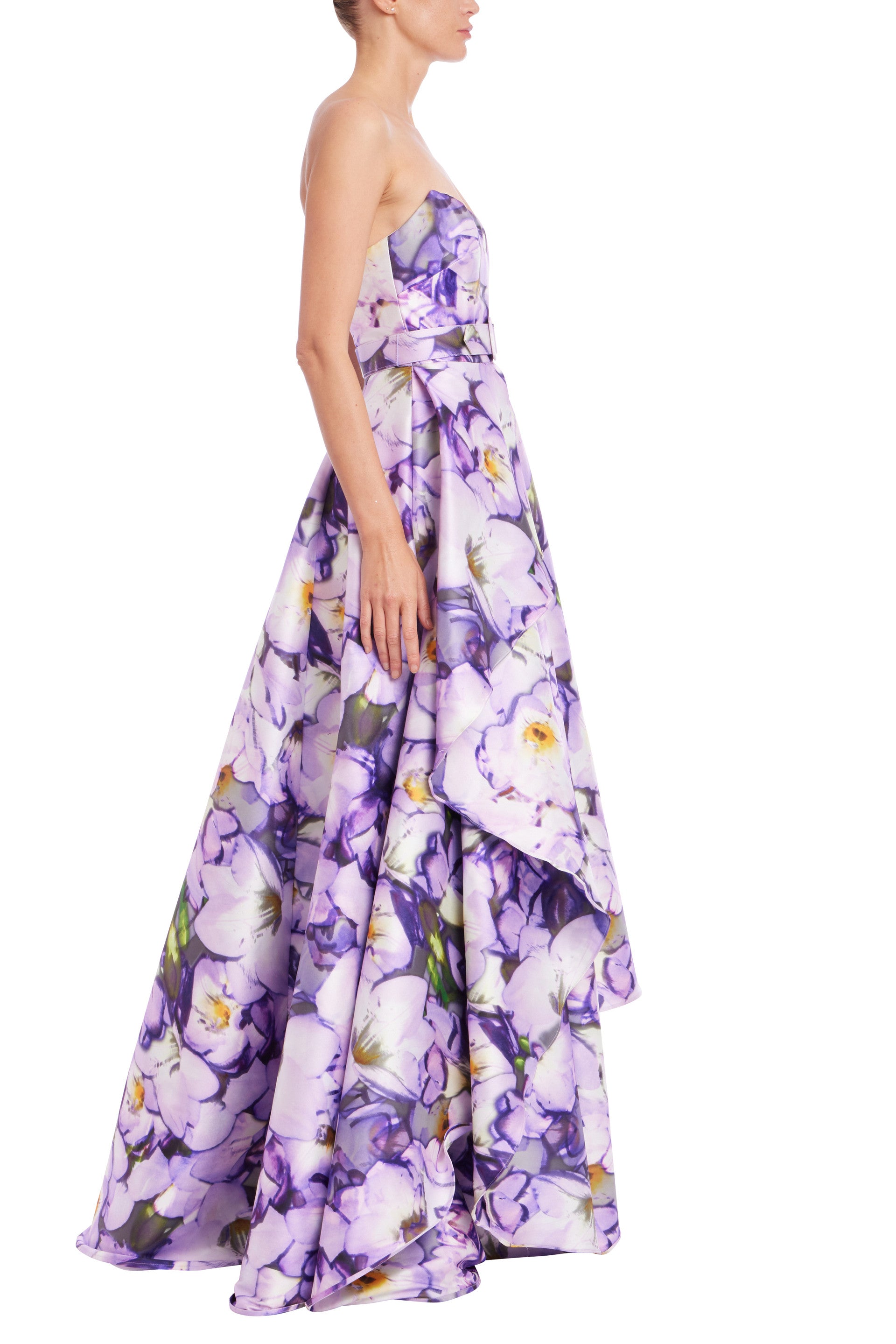 Badgley Mischka Strapless Sweetheart Neckline Floor-Length Cinched Belted Fold-Over Skirt A-Line Gown Dress